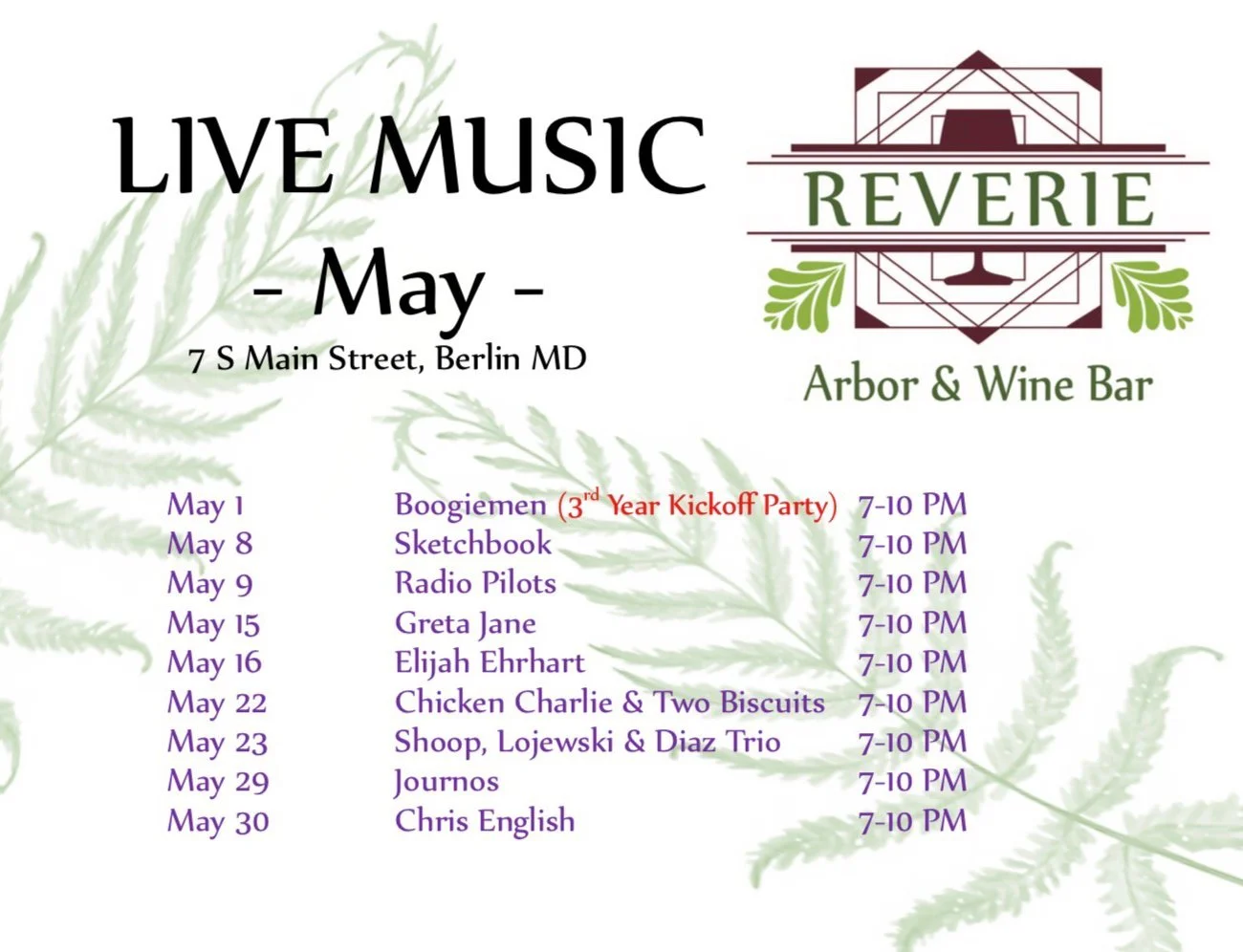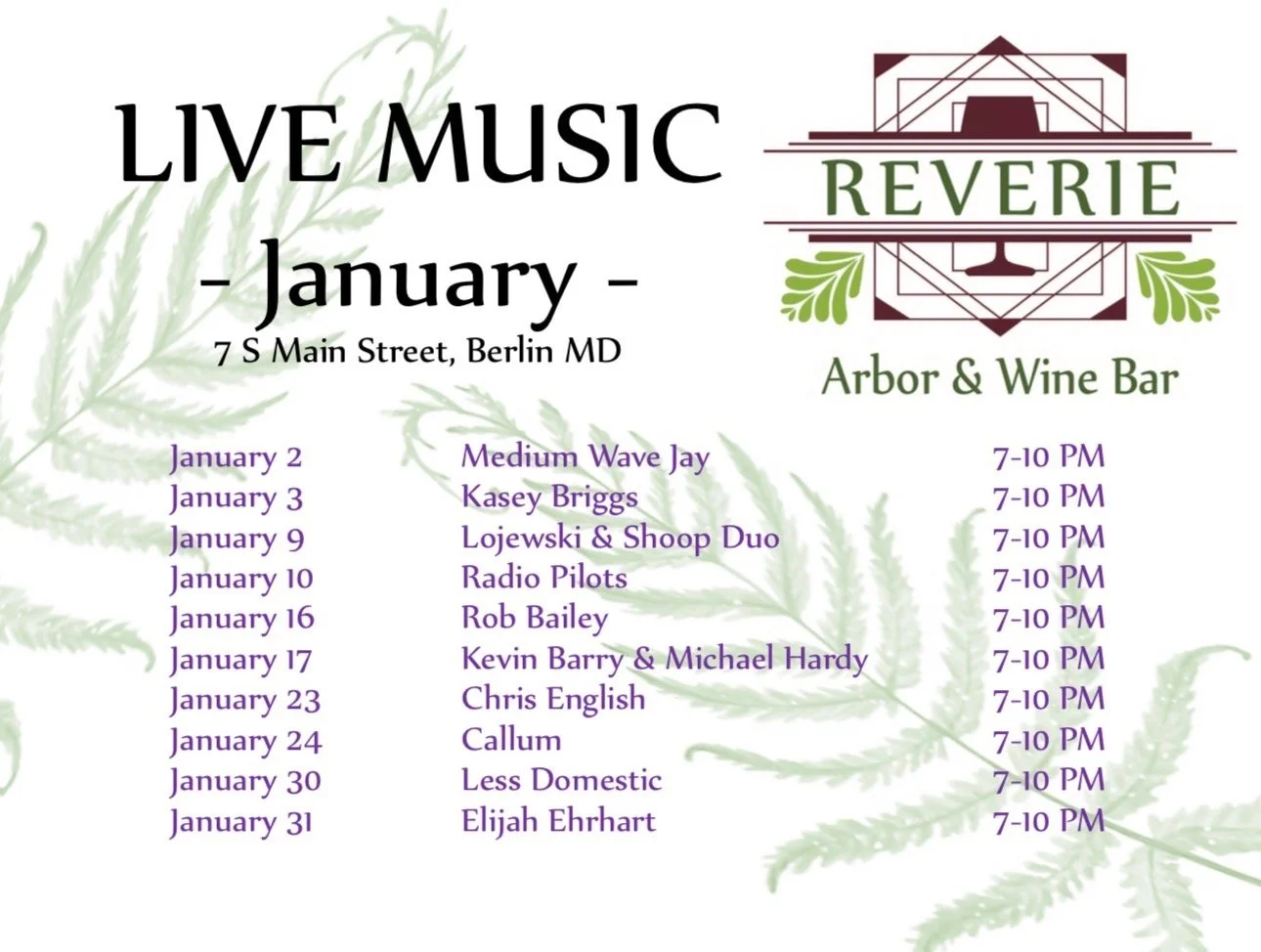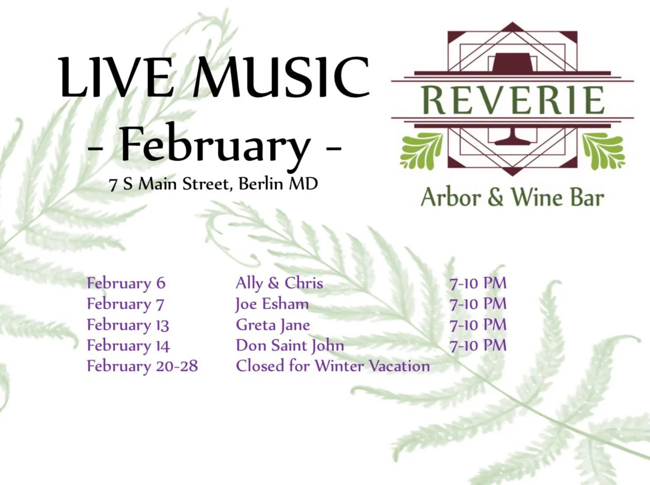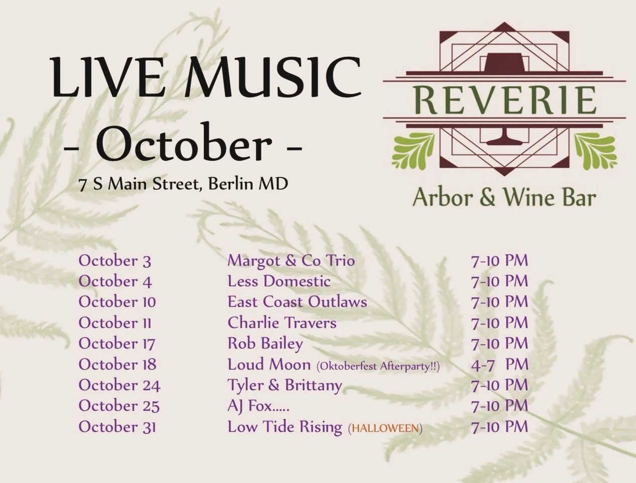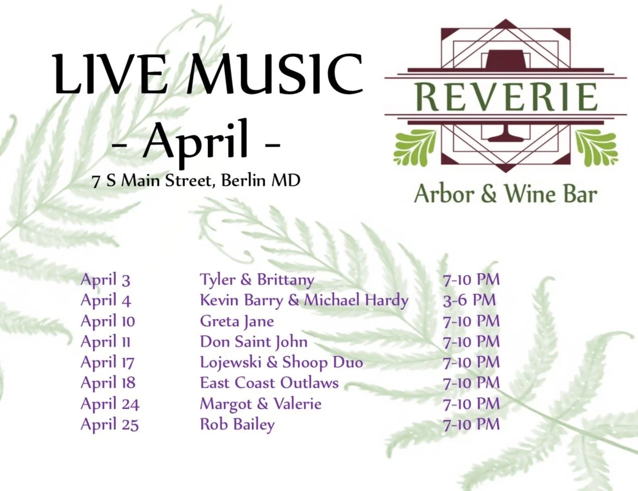 Nestled in the heart of Berlin, Maryland, Reverie Wine Bar offers a warm and cozy retreat for wine lovers and casual visitors alike. With an inviting atmosphere, eclectic décor, handcrafted meals, and a carefully curated selection of local and international wines, it's the perfect place to unwind after a busy day. With live music every weekend, all are invited for a magical experience.